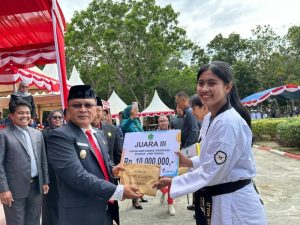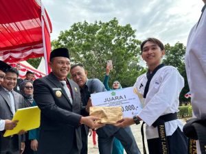 Sebagai penutup acara, Bupati Yusran Akbar memberikan apresiasi dan penghargaan berupa bonus uang tunai kepada dua atlet Taekwondo berprestasi dari Konawe.
