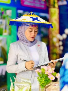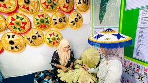 Kedatangan Hj. Hania disambut hangat oleh masyarakat Desa Baeni di stan pameran. Ia tampak terpesona saat melihat secara langsung hasil karya warga berupa topi khas Suku Tolaki, yang dikenal dengan sebutan Boru. Topi tradisional ini terbuat dari anyaman daun pandan hutan dan telah menjadi warisan budaya yang dikerjakan secara turun-temurun oleh masyarakat setempat.