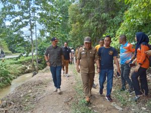 KONAWE—Penjabat (PJ) Bupati Konawe Dr. H. Harmin Ramba meninjau lansung masyarakat yang terdampak banjir Desa Konggamea dan Desa Baini di Kecamatan Sampara, Sabtu (9/3).