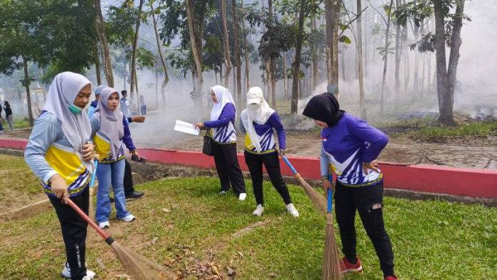 Berbekal sapu, parang, dan peralatan kebersihan lainnya, mereka bahu-membahu membersihkan area taman, selokan, hingga sudut-sudut kantor yang kerap terlewat.